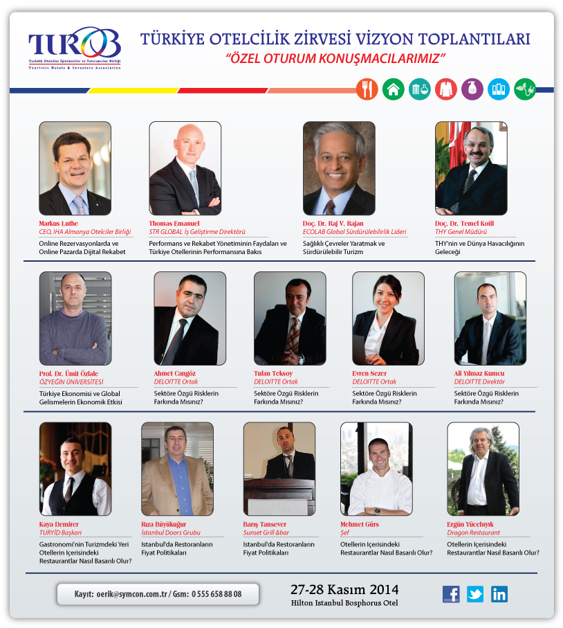 Zirvenin konuşmacıları arasında ise önemli isimler yer alıyor. Almanya Otelcileri Birliği CEO'su Markus Luthe, online pazarlamada dijital rekabetin püf noktalarına değinirken, katılımcılara yeni tüyolar verecek. Bu bölümü, uluslaraarası analiz şirketi STR Globalin İş Geliştirme Direktörü Thomas Emanuel, rekabet koşullarının yönetimi ve performans analizinin işletmeye faydalarını değerlendireceği bölüm destekleyecek.