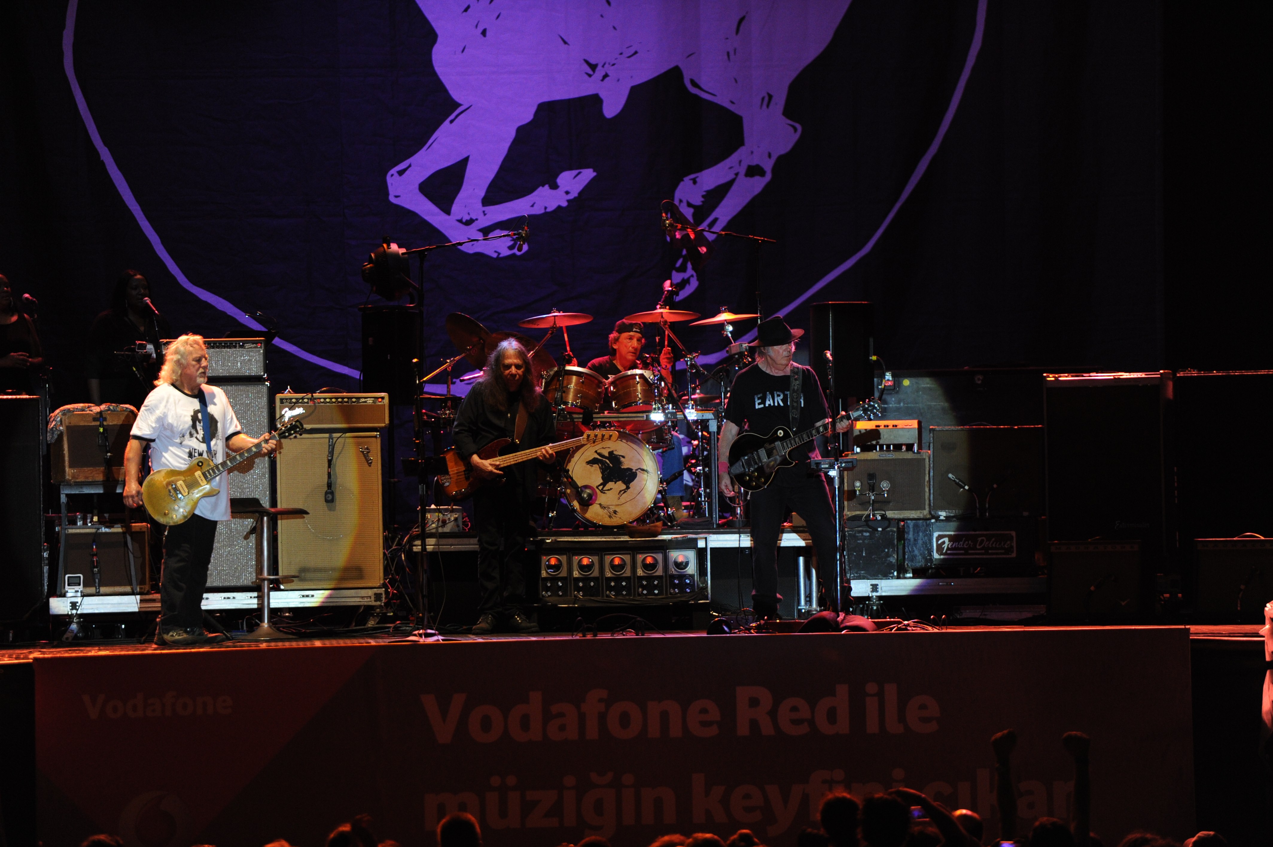Neil Young ve topluluğu Crazy Horse, 15 Temmuz Salı akşamı KüçükÇiftlik Park’ta unutulmaz bir konsere imza attı. Avrupa turnesinin 5. konseri için 44 kişilik bir ekiple İstanbul’a gelen Neil Young & Crazy Horse’un Türkiye’de verdiği bu ilk konser, İKSV tarafından, Vodafone Red sponsorluğunda düzenlendi. 6 bin müzikseverin izlediği konserde Neil Young, “Only Love Can Break Your Heart”, “Heart of Gold”, “Rockin’ in the Free World” gibi klasikleşmiş şarkılarının yanı sıra, bu yıl çıkan son albümü A Letter Home’da da yorumladığı Bob Dylan’ın “Blowin’ in the Wind” şarkısını da seslendirdi.