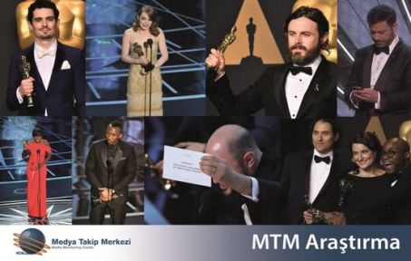Medya Takip Merkezi (MTM), sinemanın enprestijliödüllerini mercek altına aldı. Renkli görüntülere sahne olan 89. Oscar Ödül Töreni’nde yok yoktu. Kırmızı halı seramonisi, sahne şovları, rekorlar, ilkler, yanlış anons skandalı, ünlülerin yakalarındaki mavi kurdeleler, protestolar, siyasi göndermeler ve daha birçok ayrıntı. İşte araştırmanın detayları…