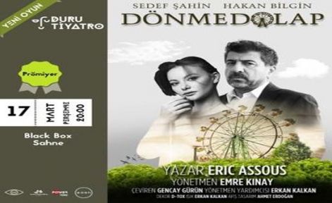 Duru Tiyatro’nun, Sedef Şahin ve Hakan Bilgin’in birlikte rol aldığı temposu yüksek, sürprizlerle dolu yeni oyunu “Dönme Dolap”, 17 Mart Perşembe akşamı 20.00’de Duru Tiyatro Ataşehir Watergarden Performans Merkezi’nde prömiyer yapıyor! Komedi, gizem ve dramanın iç içe geçtiği “Dönme Dolap” oyununun yönetmenliğini Emre Kınay üstleniyor. Oyun, prömiyerinin hemen ardından 18 Mart Cuma ve 19 Mart Cumartesi akşamları da saat 20.00’de Duru Tiyatro Ataşehir’de sahnelenecek.