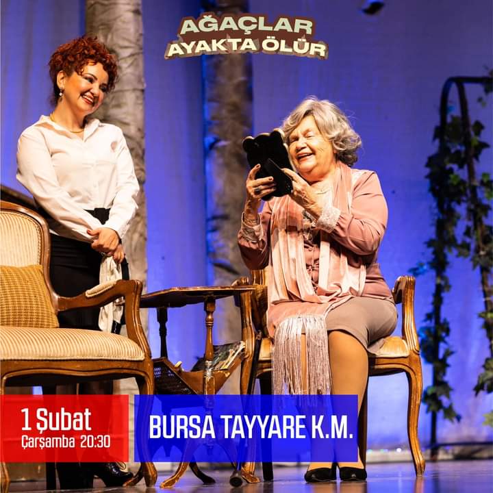 Nevra Serezli,Nuri Gökaşan /Gökhan Mete, Önder Atakanlı, Meral Asiltürk, Meltem Özlevent, Hakan Dönertaşlı’nın oynadığı oyunun sahne tasarımını Cihan Aşar, Kostüm tasarımını Sadık Kızılağaç, Işık tasarımını İsmail Sağır yaptığı 11 Ödüllü AĞAÇLAR AYAKTA ÖLÜR oyunu :