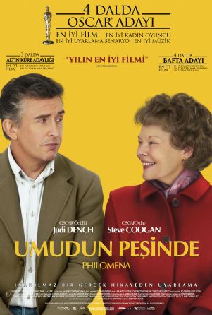Yılın en etkileyici filmlerinden biri olarak gösterilen ve Oscar adaylıklarının yanı sıra 3 dalda Altın Küre, 4 dalda BAFTA adayı olan ve Venedik Film Festivali’nde En iyi Senaryo ödülü kazanan PHILOMENA / UMUDUN PEŞİNDE, kayıp oğlunu arayan bir annenin gerçek öyküsünü anlatıyor.