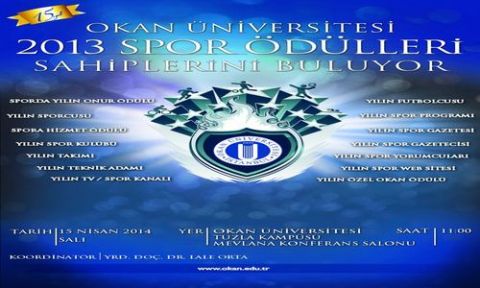 Okan Üniversitesi öğrencilerinin oylarıyla belirlenen “Okan Üniversitesi 2013 Spor Ödülleri”, 15 Nisan 2014 Salı günü saat 11.00’da üniversitenin Tuzla Kampüsü’nde düzenlenecek törenle sahiplerini bulacak.