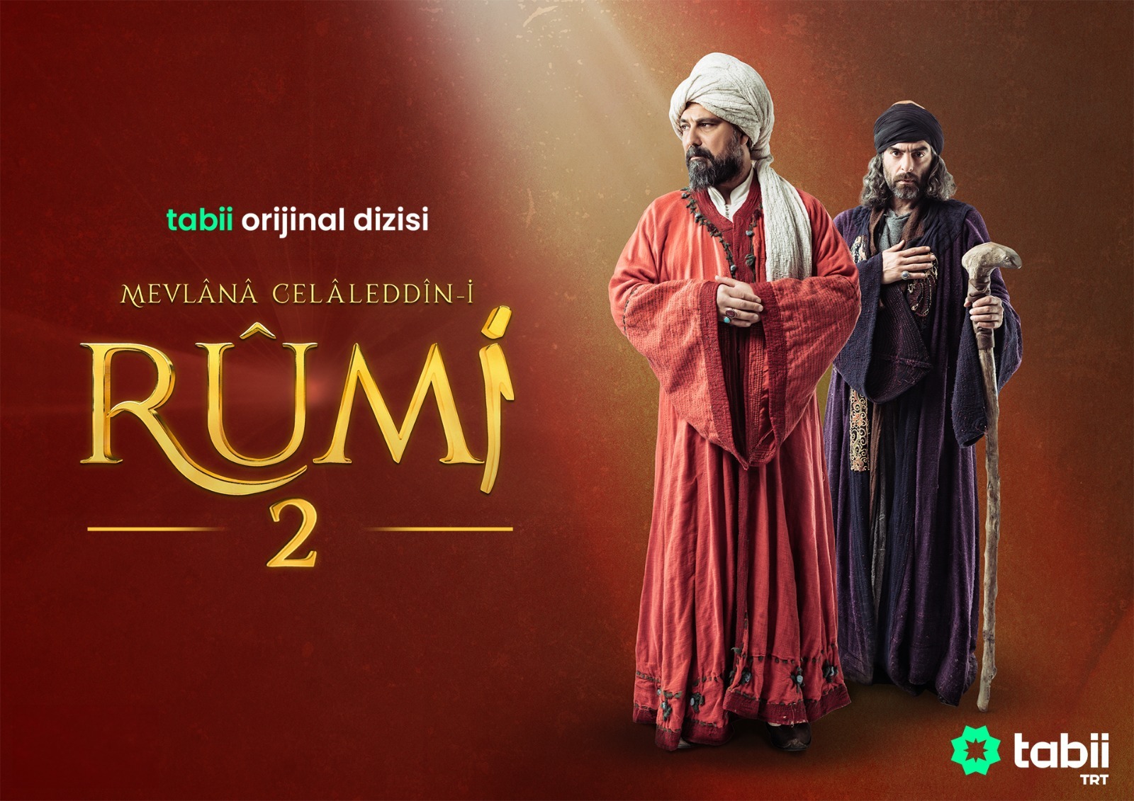 Mevlânâ Celâleddîn-i Rûmî dizisi 2. sezon ilk bölümüyle 9 Aralık’ta yayınlanacak ve devamında her cumartesi yeni bölümleriyle tabii’de olacak. Oyuncu kadrosunda Mevlânâ Celâleddîn-i Rûmî rolüyle Bülent İnal ve Şems-i Tebrizi rolüyle Mehmet Ali Nuroğlu bulunuyor. Ayrıca Kaan Yıldırım, Ahu Türkpençe, Devrim Özkan, Mert Turak ve Nilay Deniz’in yanı sıra Ushan Çakır, Levent Can, Yusuf Çim, Burak Can, Ali Nuri Türkoğlu, Turgay Aydın, Burç Kümbetlioğlu ve İlker Aksum gibi tanınmış isimlerin de yer aldığı Mevlânâ Celâleddîn-i Rûmî’nin yönetmenliğini Can Ulkay, üstlenirken dizinin senaryosu Ali Aydın ile Fatma Berra Mete’ye ait.