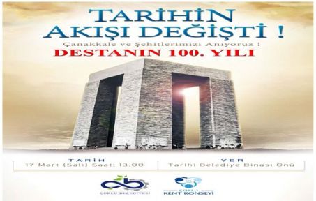 Çanakkale Zaferi’nin 100. yılı münasebetiyle Çorlu Tarihi Belediye Binası’nda düzenlenecek etkinlik 17 Mart 2015 Salı günü saat 13:00 itibariyle gerçekleştirilecek. Program kapsamında fotoğraf sergisi öncesi saat 12.00’den itibaren Askeri Bando tarafından marşlar çalınacak. Günün anlam ve önemine dair konuşmanın Çorlu Kent Konseyi Başkanı Ramadan Cesur tarafından yapılması ve şiirlerin okunmasına müteakip fotoğraf sergisinin açılışı yapılacak. Fotoğraf sergisini ziyaret eden vatandaşlarımıza Çanakkale Savaşlarında mücadele eden askerlerimizin bir öğünlük yemeği olan kırık buğday çorbası ikram edilecek. Yapılacak etkinlik ile ilgili açıklamada bulunan Çorlu Kent Konseyi Başkanı Ramadan Cesur, “Çanakkale Zaferi’nin 100. yılında tarihimize ışık tutmak ve o günleri yad etmek adına düzenleyeceğimiz etkinliğe tüm halkımızı davet ediyoruz” dedi.
