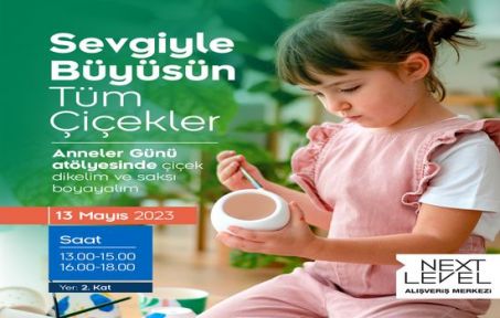 13 Mayıs Cumartesi günü 2 farklı seans olarak gerçekleşecek atölyelerde çocuklar anneleri ile birlikte kendi boyayacakları saksılara çiçekler dikecek; hediyelerini kendileri yaparken keyifli zaman geçirecekler. Anneler Günü’nü kutlayan çocuklar ektikleri çiçeklerle sevgilerini de büyütecekler.