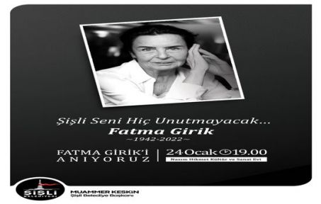 Hayat verdiği yüzlerce karakterle Türk sinemasında derin izler bırakan; dürüst, adil yönetim anlayışıyla Türk siyasetinde fark yaratan, Yeşilçam’ın dört yapraklı yoncasından Fatma Girik ölümünün 1. Yıldönümünde, 1989-1994 yılları arasında başkanlık görevini yürüttüğü Şişli’de anılacak. 24 Ocak Salı, saat 19.30’da Şişli Belediyesi Nazım Hikmet Kültür ve Sanat Evi’nde düzenlenecek olan anma etkinliğine sanatçının ailesi, dostları, siyasette yol yürüdüğü arkadaşları ve sevenleri katılacak.
