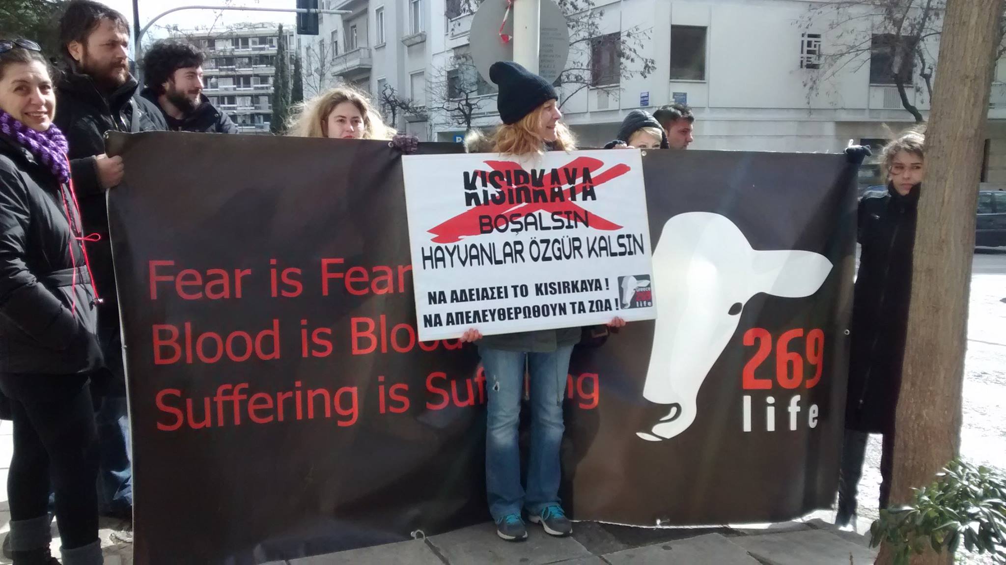 Bugün, Yunanistan’ın başkenti Atina’daki Türkiye Büyükelçiliği önünde toplanan 269Life Greece adlı hayvan hakları örgütü ve Yunanistanlı hayvan hakları savunucuları, söz konusu dev hayvan tecrit merkezini protesto etti. Eylemin sonunda aktivistler, 3 hayvan özgürlüğü/vegan grubun ve 8 hayvan hakları örgütünün imzaladığı ve Kısırkaya’daki dev hayvan barınağının kapatılmasını talep eden mektubu Türkiye Cumhuriyeti Atina Büyükelçisi Kerim Uras’a ulaştırmak istedi ancak Türk yetkililer mektubu geri çevirdi.