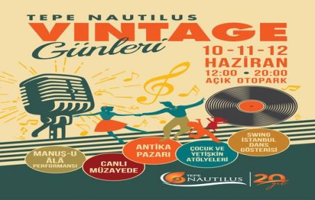 10-12 Haziran tarihlerinde, Tepe Nautilus açık otoparkında gerçekleşecek Vintage Günleri sizleri keyifli bir zaman yolculuğuna davet ediyor. Ücretsiz gerçekleşecek etkinlikte, antika ve vintage pazarı ve canlı müzayedelerin yanı sıra dans gösterileri, atölyeler, mini atlıkarınca, ABD’li sinema yıldızı Marilyn Monreo cosplayi, Manuş-u Ala ve Bestem Yuvarlak Çocuk Şarkıları performansı Tepe Nautilus ziyaretçilerini bekliyor.